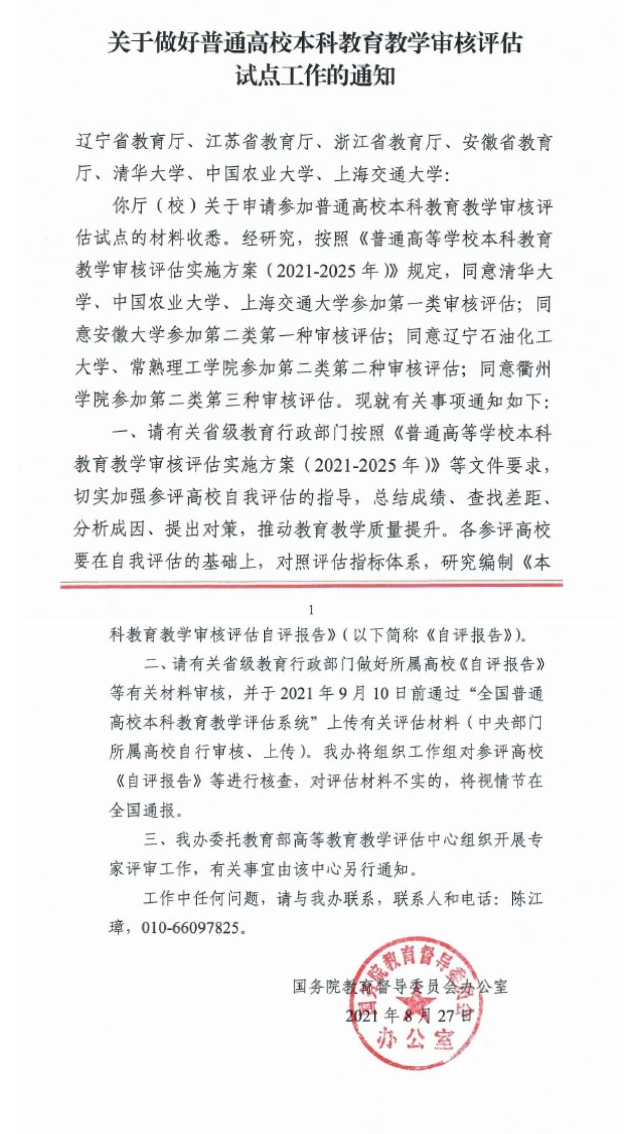 国教督办函〔2021〕55号|关于做好普通高校本科教育教学审核评估试点工作的通知